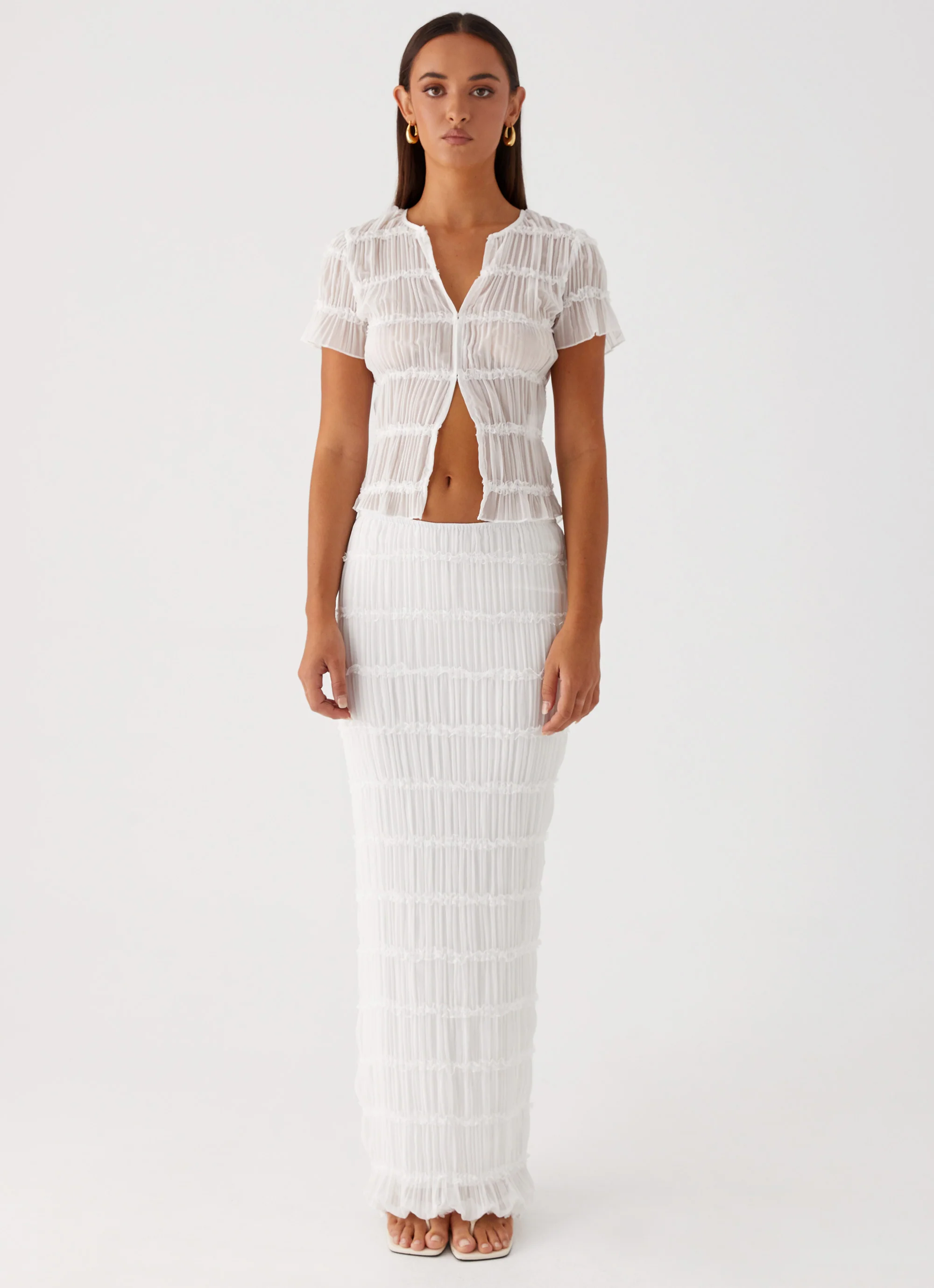Float through the night in the Daydreaming Top. Crafted from sheer, textured fabric and unlined for an ethereal look, this top is perfect for adding a touch of whimsy and allure to your evening style